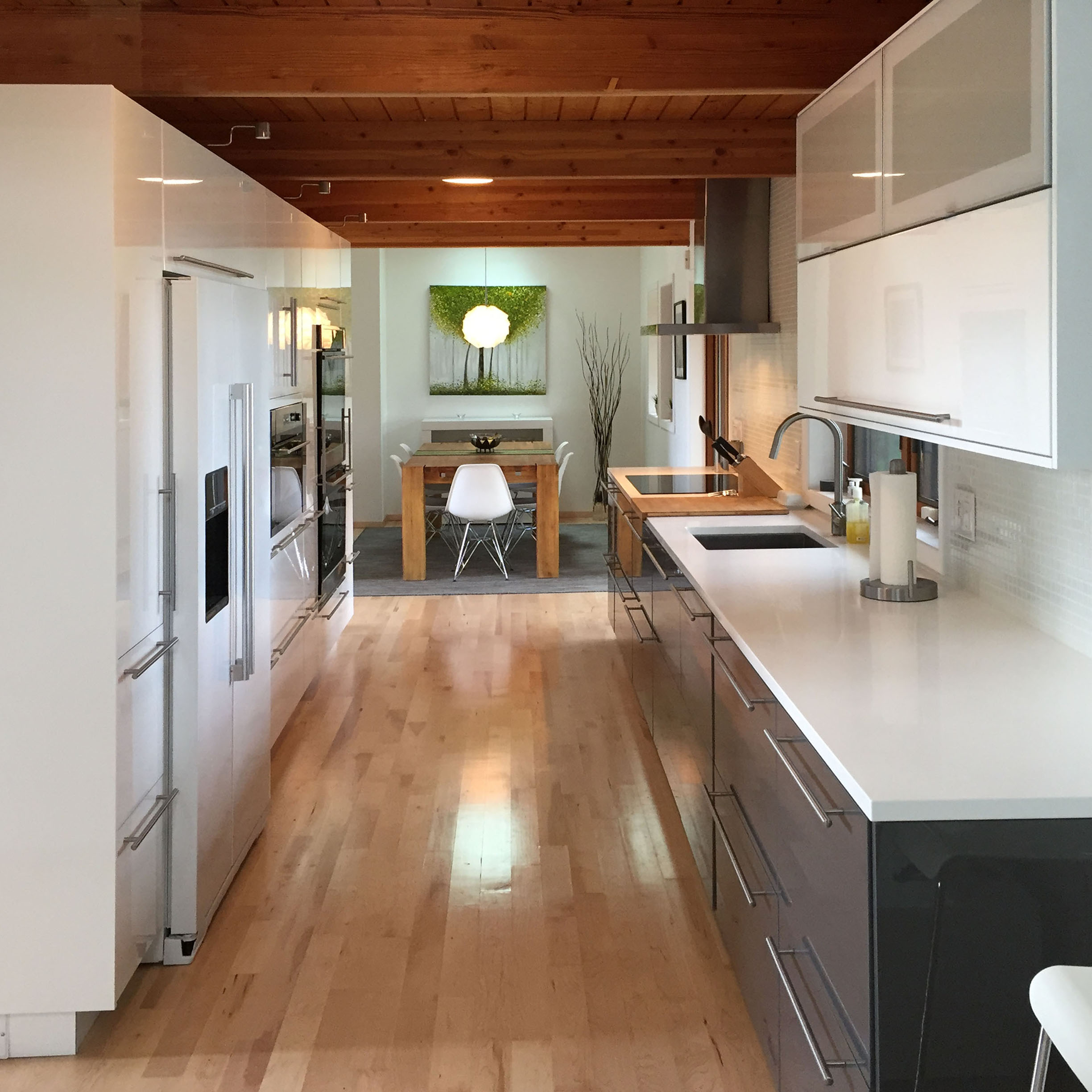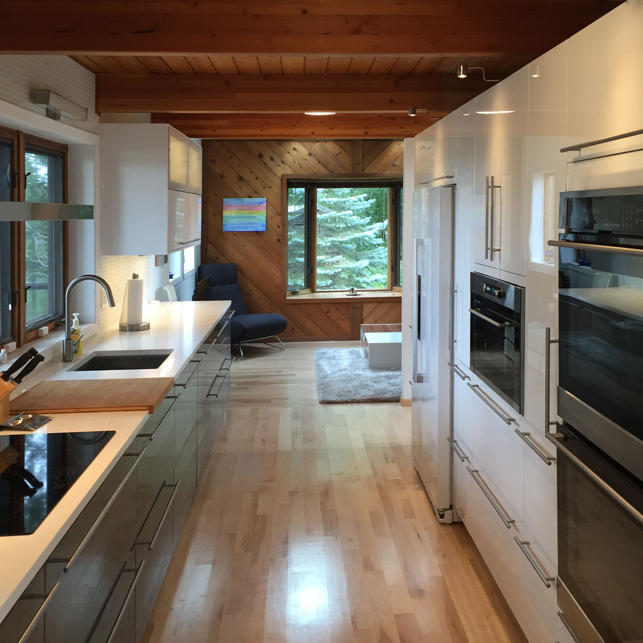 A new modern kitchen was installed including new induction cooktop and hood, new refrigerator, dishwasher and double oven.