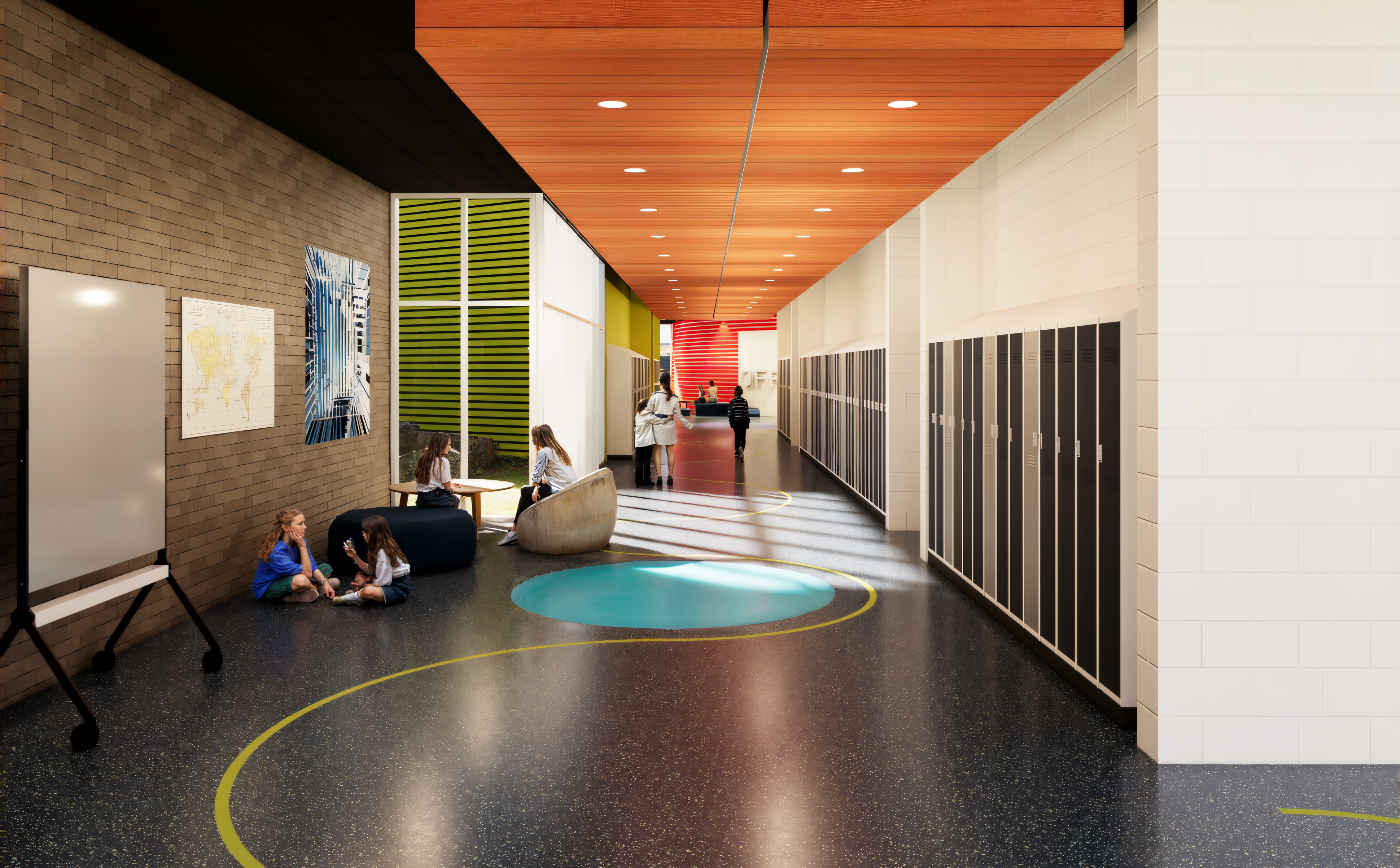 This study challenged the conventional model of the double-loaded corridor, where learning spaces are reduced to rooms along endless hallways. Instead, circulation was designed as an active part of the educational environment—transparent, porous, and animated by exchange. Movement itself became an opportunity for learning and connection.