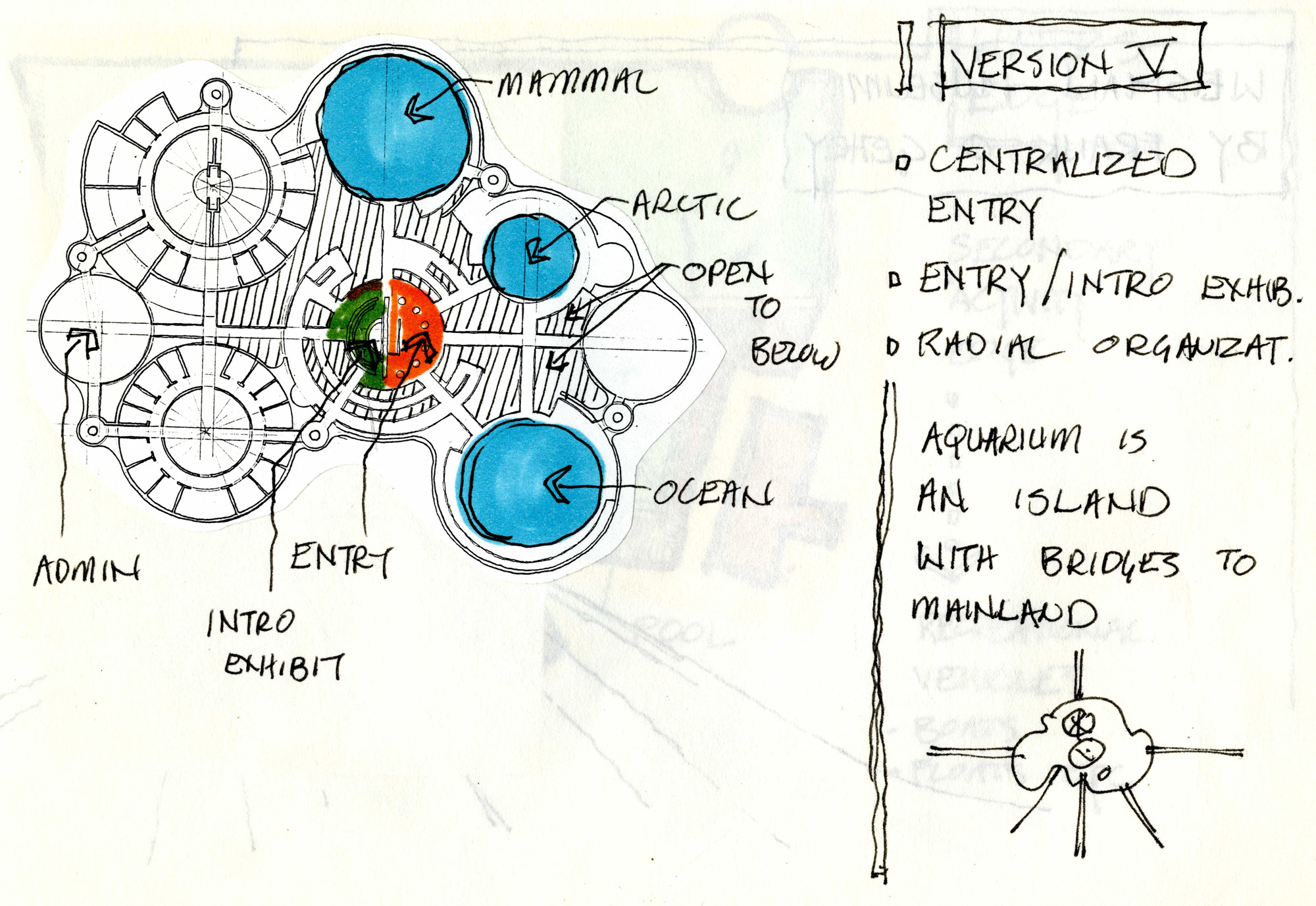 - Below Grade: A series of “black box” exhibit halls housing specimen tanks, designed for controlled environments and ease of viewing.